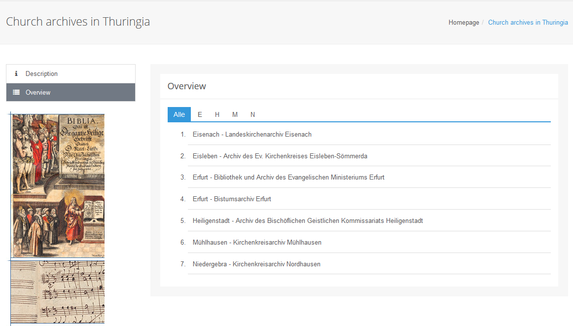 Here you can access a list of all places in Thuringia, which are represented here with one or more archives as well as all archives assigned to the respective place. - The project